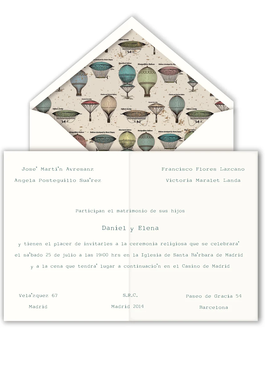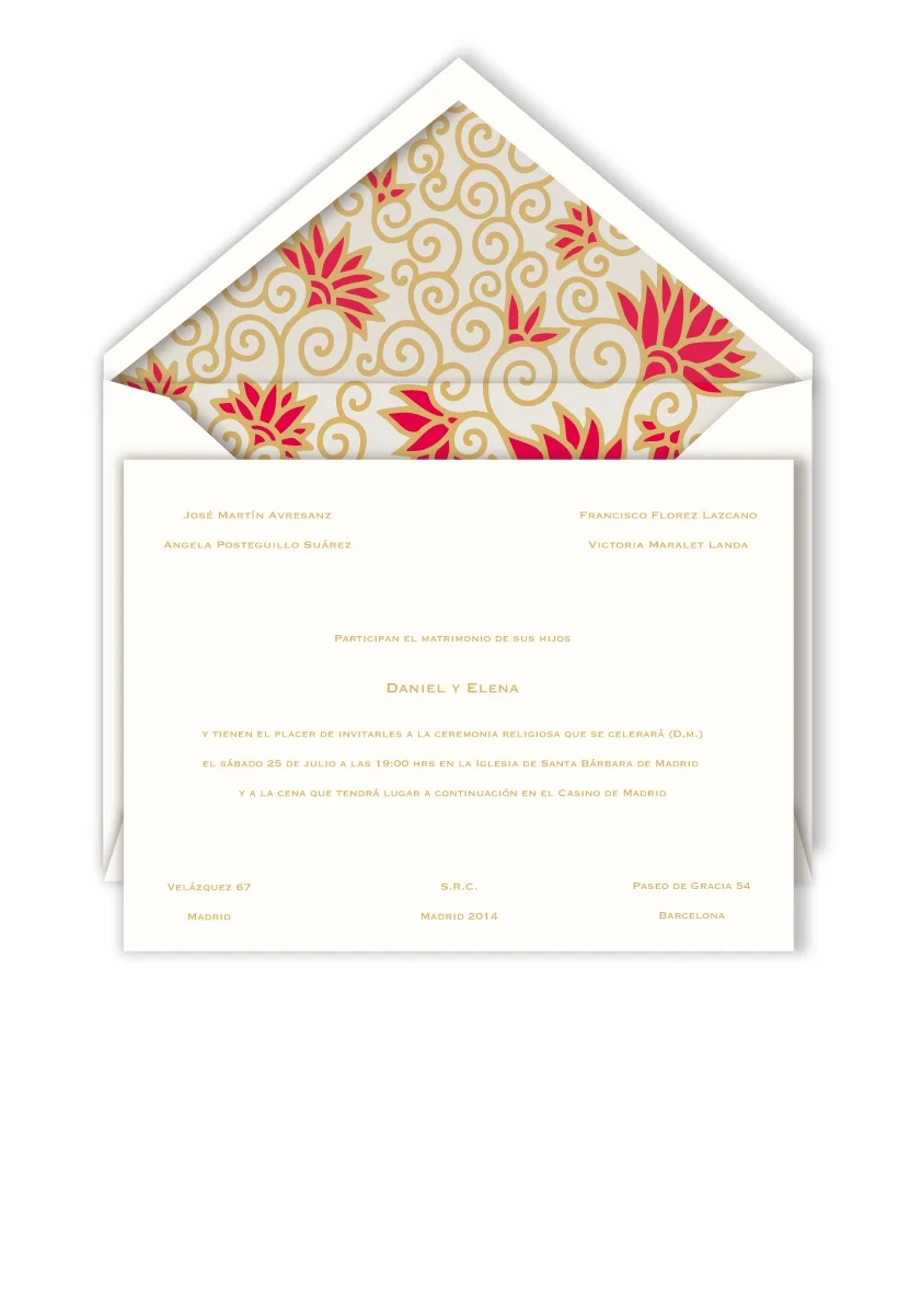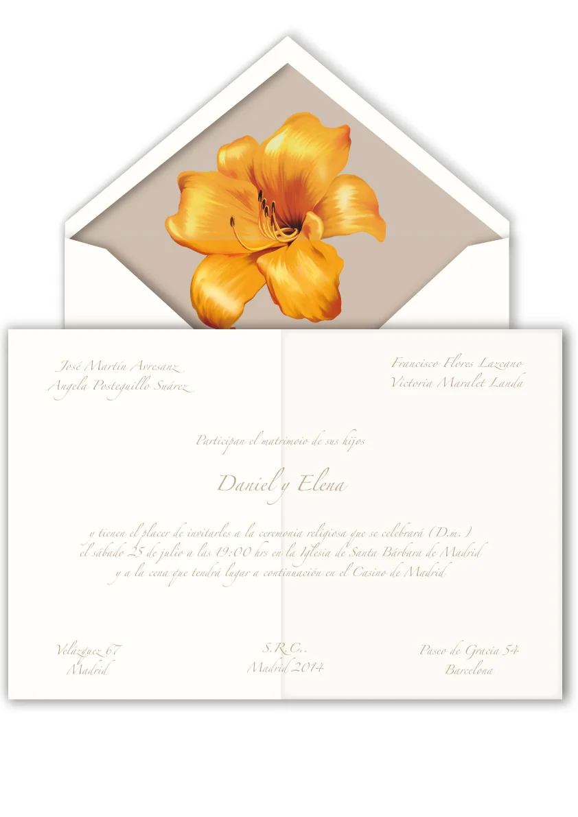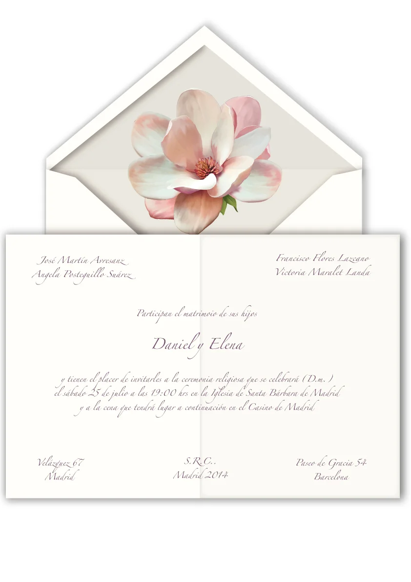 Sobre: 16,8 x 22 cm verjurado color marfil, verde, azul cobalto o arena